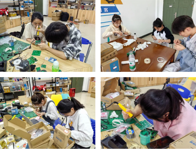 团队成员焊接电路