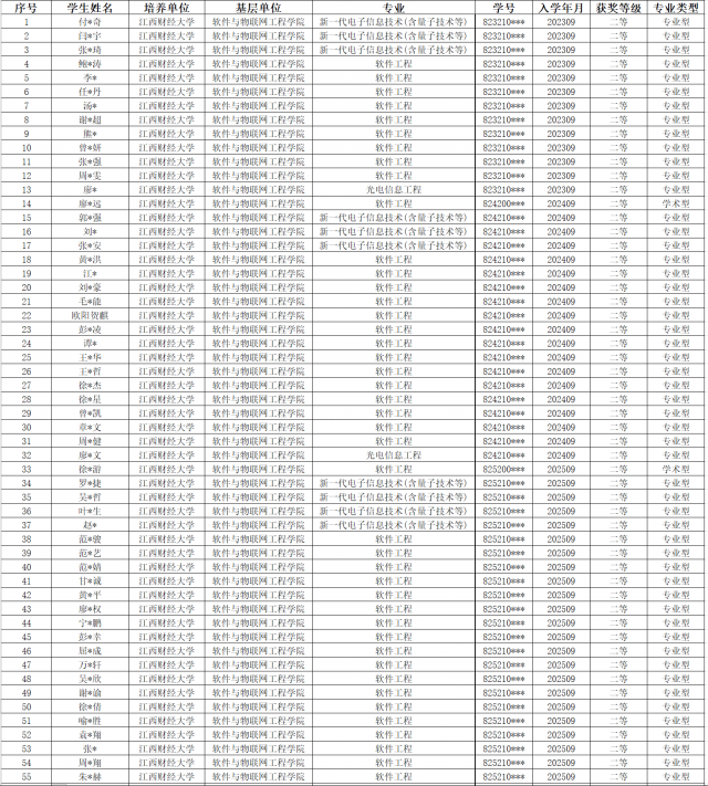 根据教育部、财政部印发的《江西省学生资助工作操作规程》(赣教助字〔2025〕1号),以及做爱视频 学工处《关于做好2025年研究生学业学金评审及相关工作的通知》的有关规定,做爱视频 依照“公平、公正、公开”原则,根据《做爱视频 研究生学业奖学金评选实施办法(2022年修订)》(以下简称《评审办法》),严格按照《评审办法》的条件和程序组织评选。经自愿申报、资格认定,现将2025—2026学年研究生省政府学金评审工作结果给予公示。具体结果如下: