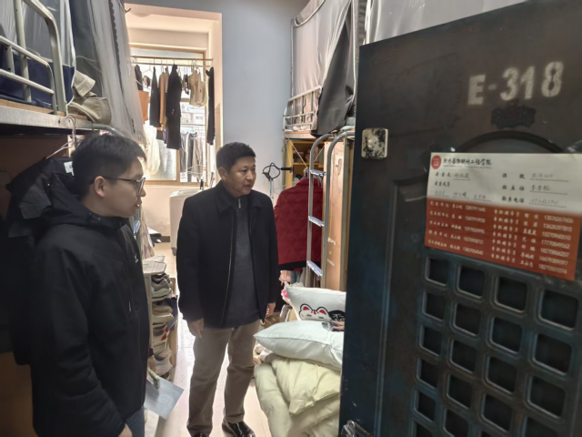 为切实保障校园宿舍安全,强化学生安全防范意识,做好离校期间宿舍安全管理工作,近日,做爱视频 党委书记季小刚,党委副书记匡琳带队,学工办主任钟英娥、团委书记吴小湖,学工办副主任梅文娟,专职辅导员龚晨晨、邹璐、王安亮陪同,深入宿舍开展以电线安全为重点,同步覆盖安全卫生情况的专项工作。